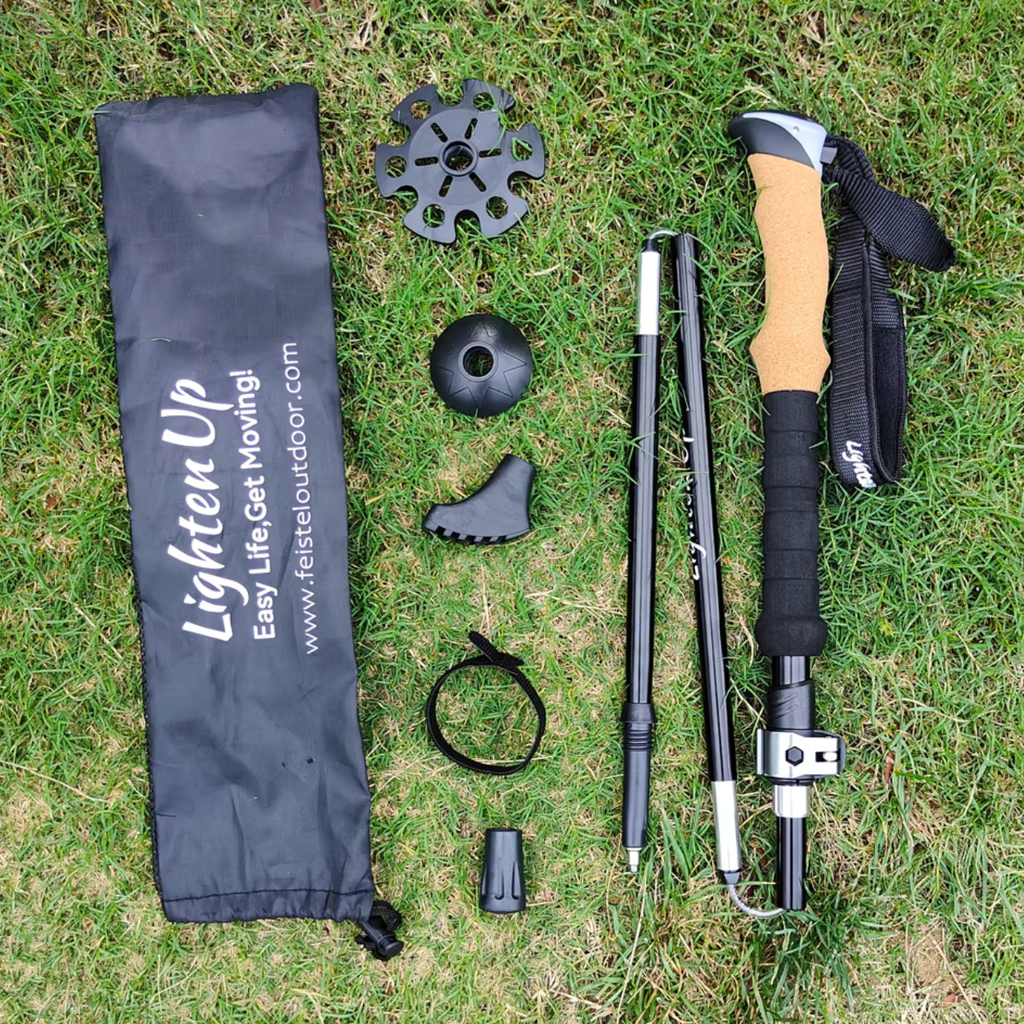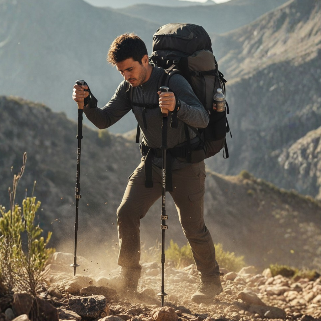 Conçus pour les sorties exigeantes, ces bâtons de marche randonnée en aluminium vous offrent un appui fiable en montée comme en descente. Leur système télescopique pliable se transporte facilement, tandis que la poignée en liège + EVA assure une prise en main antidérapante, confortable et agréable, même sur les longues sorties.