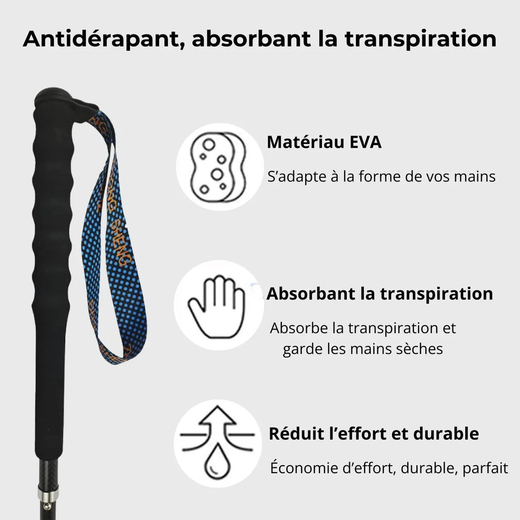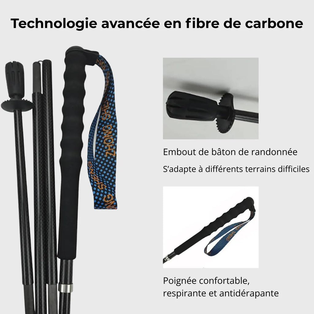 Choisissez vos bâtons de randonnée pliables en fibre de carbone et partez avec plus de confort, de stabilité et de légèreté.