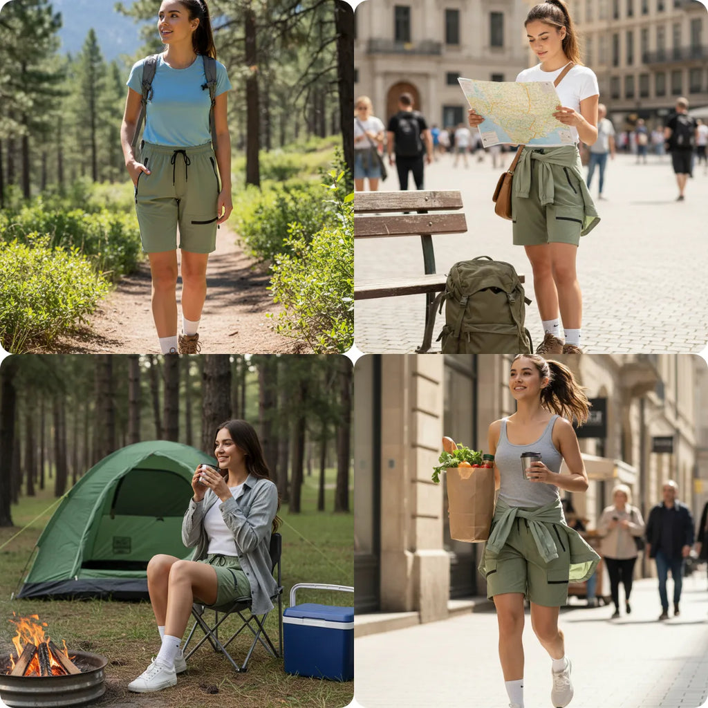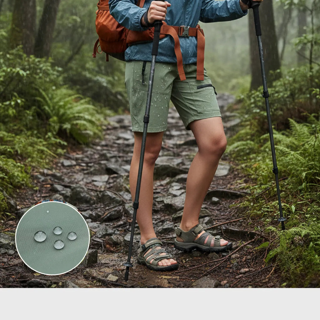 Ce short de randonnée pour femme est conçu pour les activités outdoor exigeantes et les voyages actifs. Il combine résistance, élasticité et légèreté. Son tissu extensible dans quatre sens, sa taille élastique avec cordon de serrage et ses poches zippées sécurisées offrent un confort optimal et une grande praticité, même en mouvement.