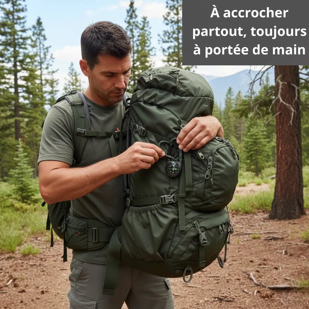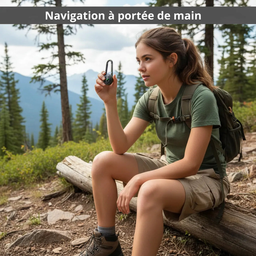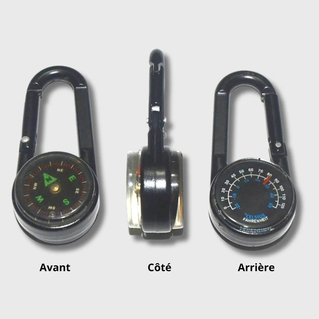Adoptez ce mousqueton boussole thermomètre pour voyager plus sereinement.