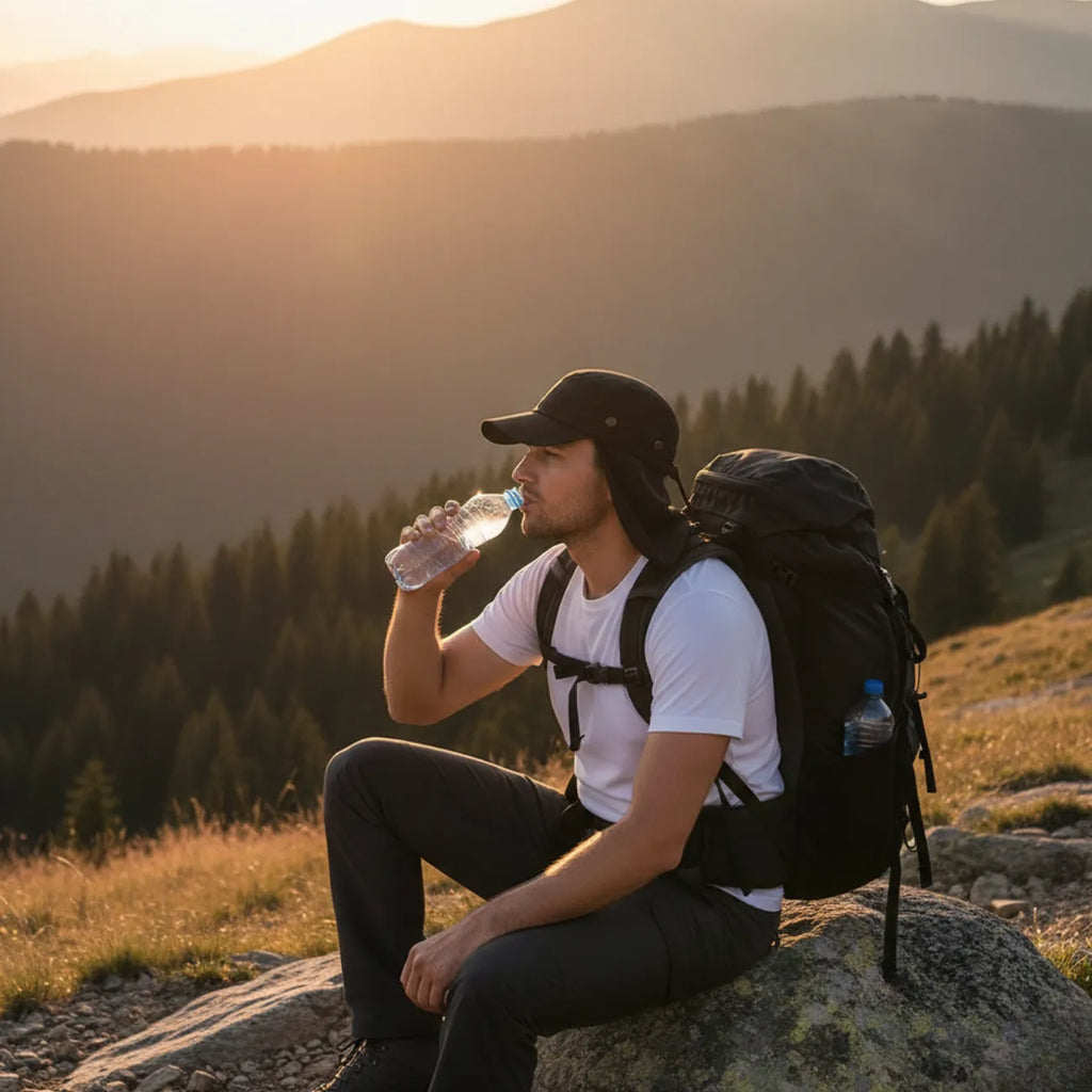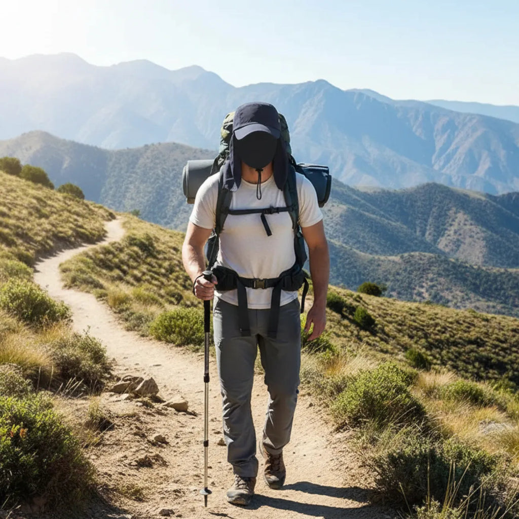 - Protection solaire : Large bord + rabat de cou