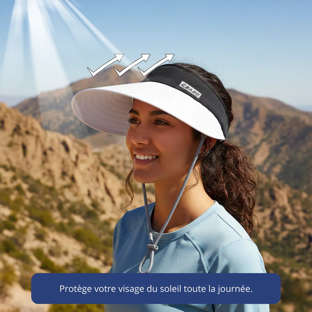 Le large bord crée une ombre généreuse pour protéger le visage en plein soleil.