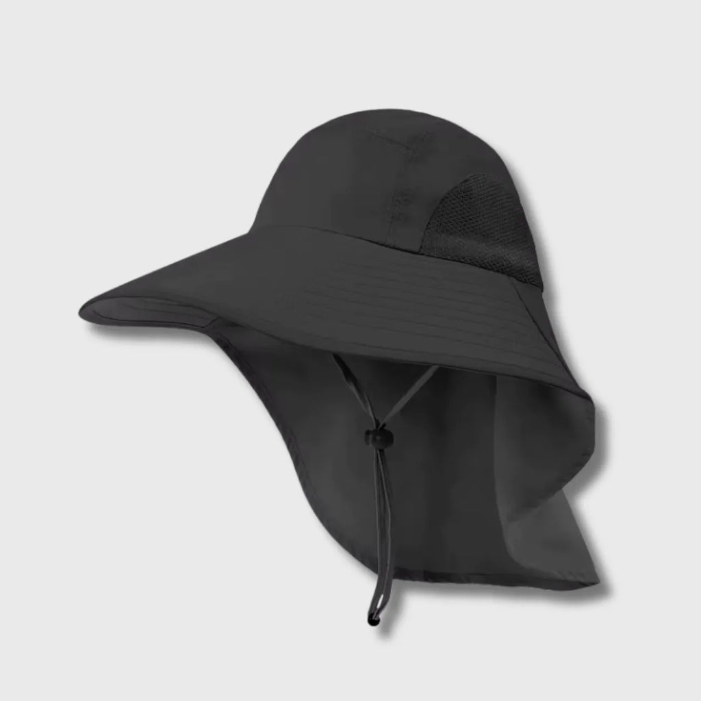 Le bord large et le rabat protège-nuque offrent une couverture optimale contre le soleil.