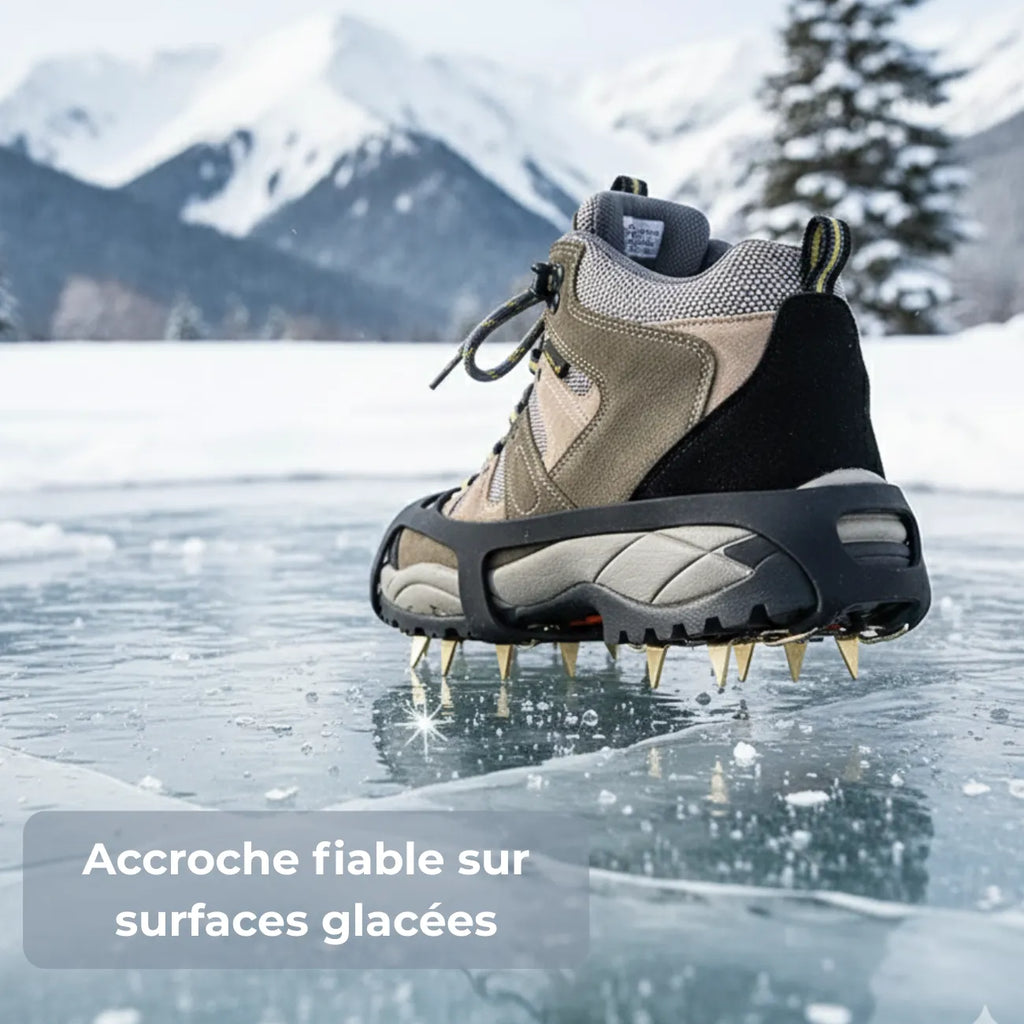 Installation simple : placez le produit sous la chaussure et ajustez. Parfait pour les sorties hivernales sans contrainte.