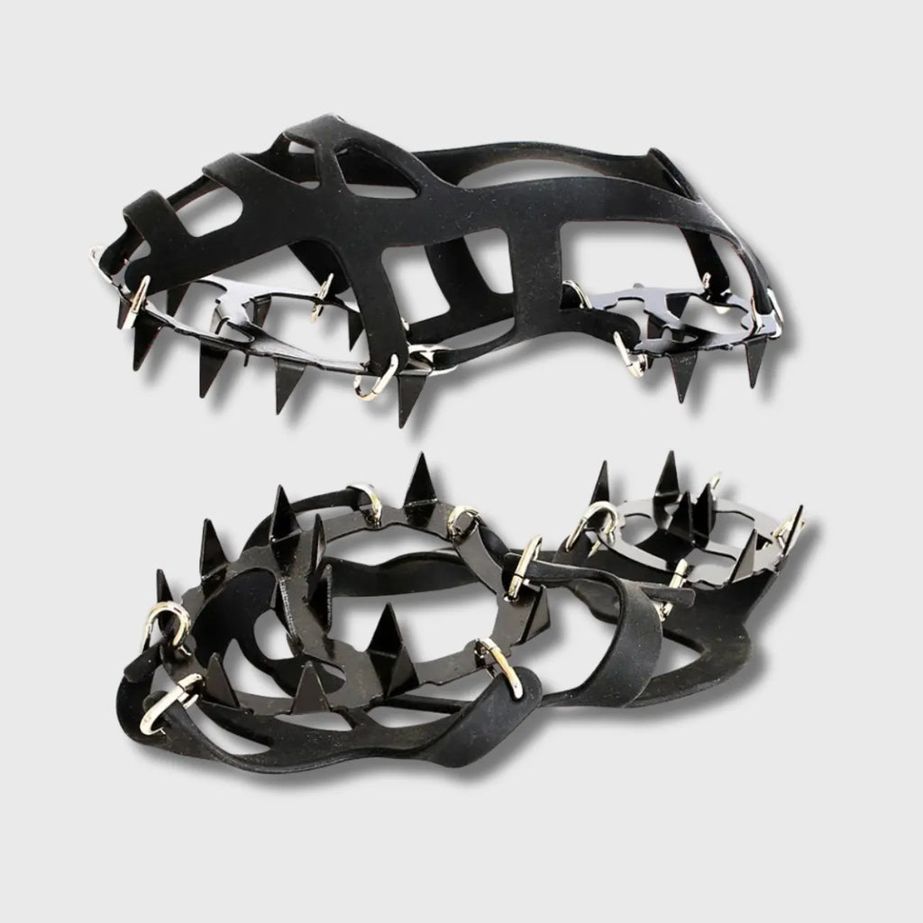 Légers, rapides à enfiler et pensés pour sécuriser vos déplacements, nos crampons neige 18 dents offrent une excellente adhérence sur neige compacte et sols verglacés. Leur silicone haute élasticité épouse la chaussure pour un maintien fiable, tandis que les 18 dents en acier au manganèse assurent une traction efficace à chaque pas.