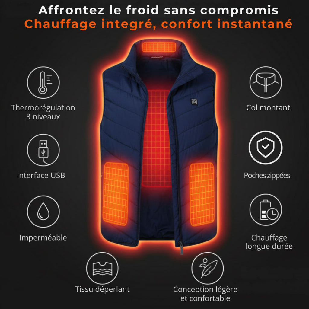 Profitez d’une chaleur constante lors de vos randonnées, sorties ski ou expéditions hivernales grâce à notre gilet chauffant. Conçu pour résister aux conditions les plus froides, il diffuse une chaleur douce et uniforme, garantissant un confort optimal durant toutes vos activités en extérieur.