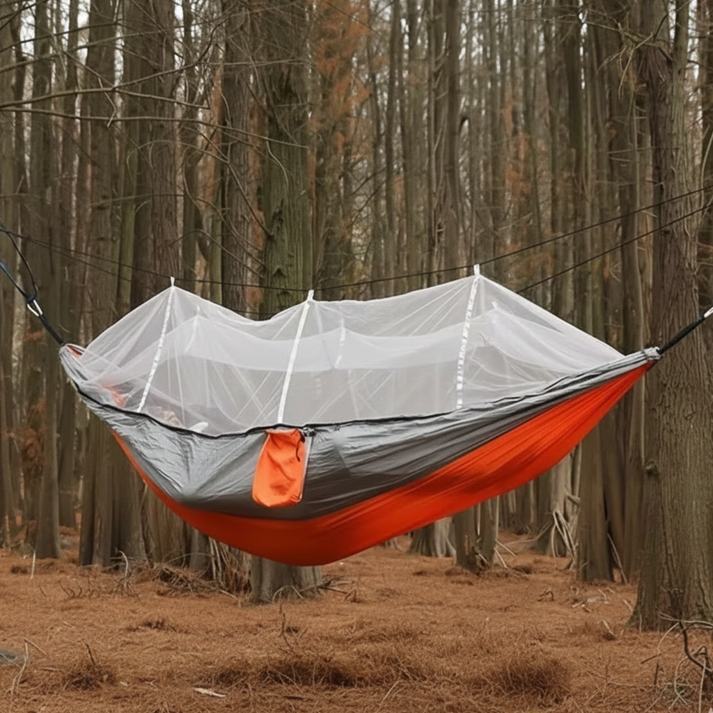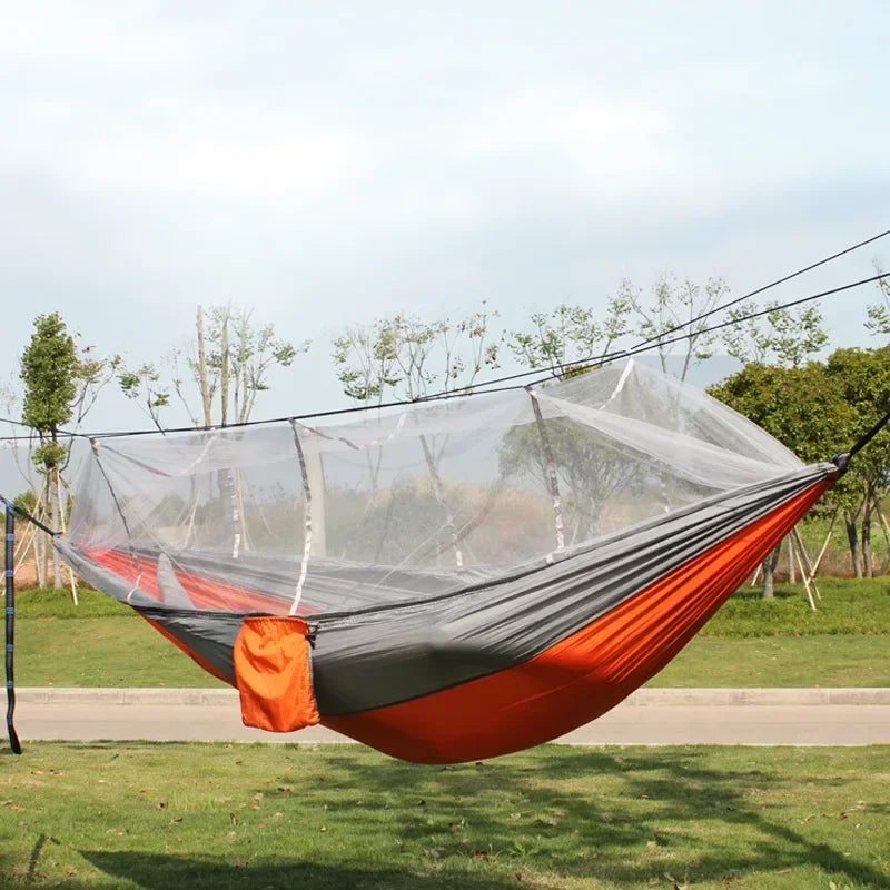 Profitez d'un montage simple et intuitif grâce aux sangles et boucles fournies : fixez le hamac, tendez la moustiquaire et détendez-vous en quelques instants.