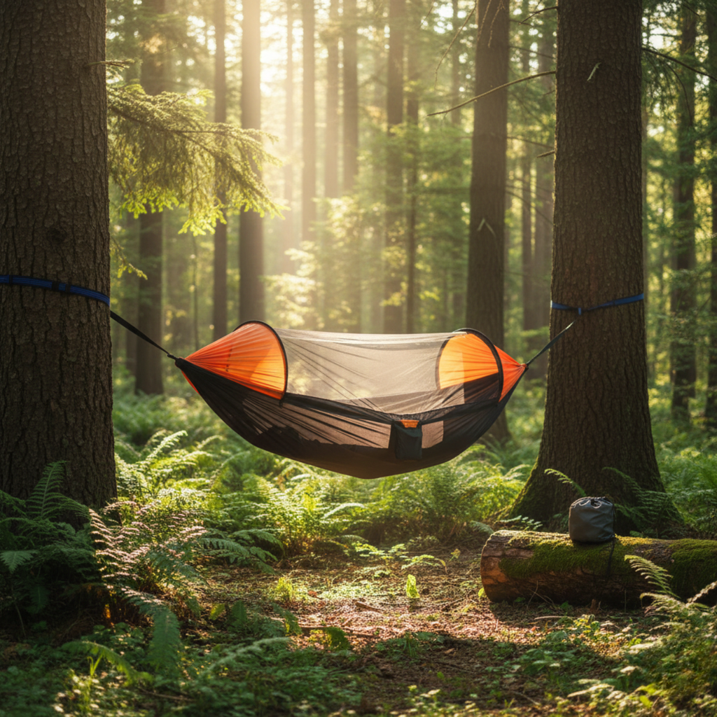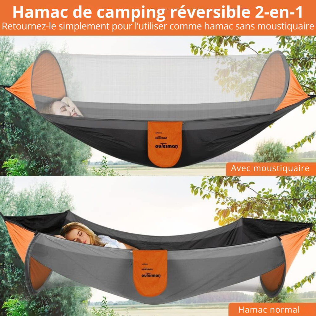Hamac-tente spacieux pour une ou deux personnes, idéal pour la détente en extérieur.