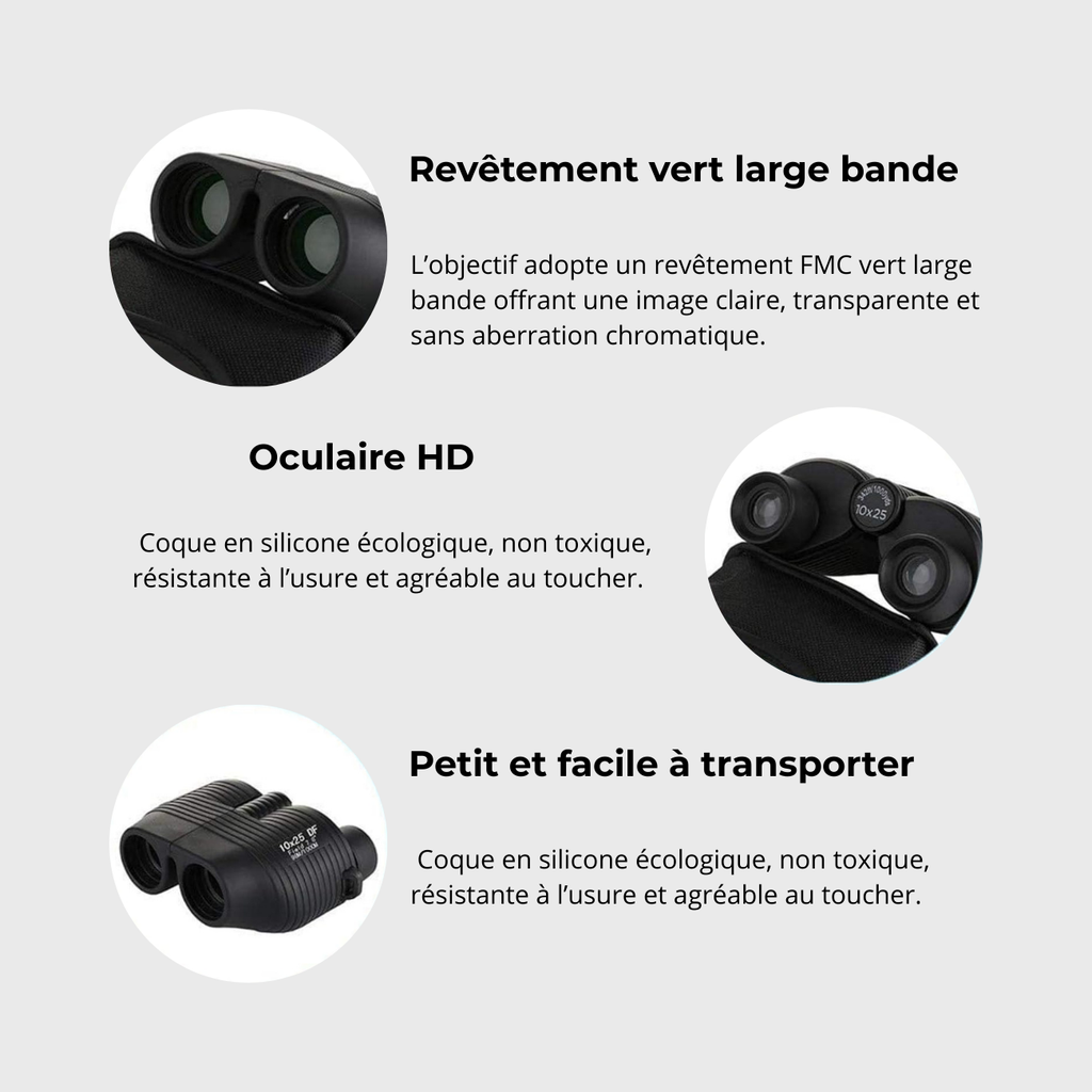 Grossissement 10x pour admirer paysages et faune à distance et profiter pleinement de chaque sortie en montagne.