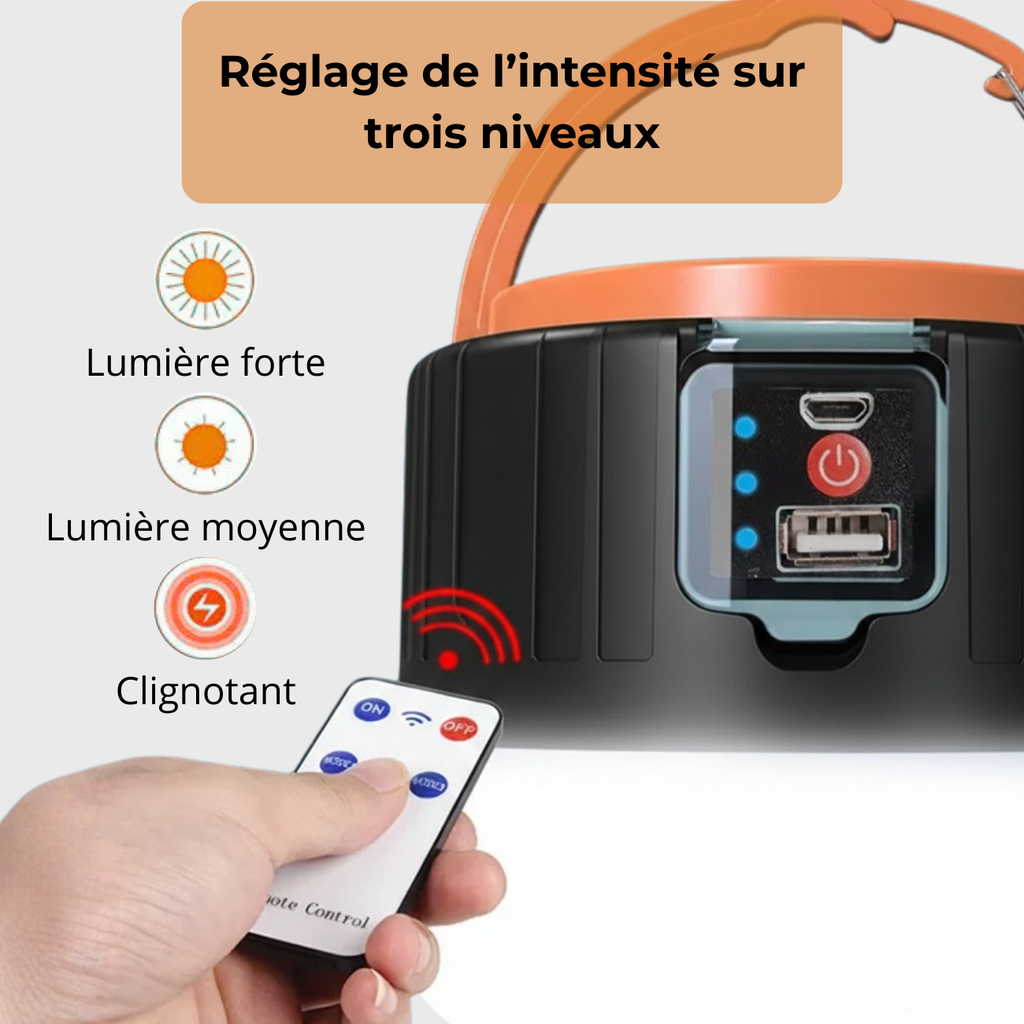 Rechargez-la selon votre situation : au soleil ou via port USB, idéale pour le plein air et les imprévus.