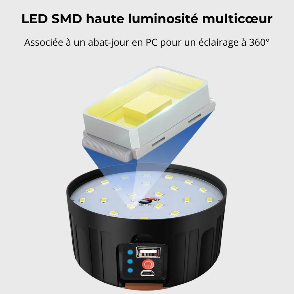 Une lampe LED conçue pour éclairer tout autour de vous et créer une zone lumineuse confortable au campement.