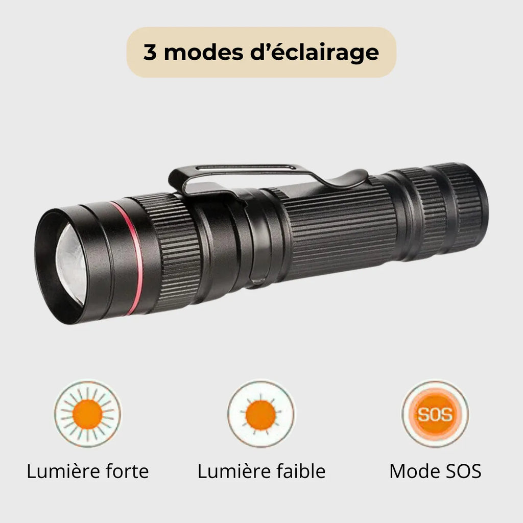 Cette lampe torche rechargeable vous offre un éclairage pratique, puissant et fiable pour toutes vos sorties