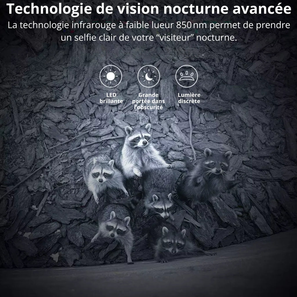 Grâce à un déclenchement ultra-rapide de 0,3 seconde et ses 26 LEDs infrarouges, la caméra saisit des photos et vidéos claires, même la nuit, sans effrayer les animaux.