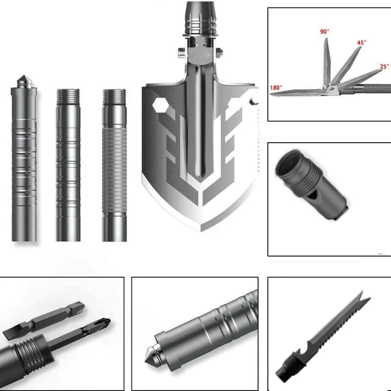 Soyez prêt à tout avec cette pelle militaire pliante ultra-polyvalente, combinant hache, scie, houe, couteau dentelé, tournevis hexagonal, boussole, sifflet et bien plus encore. Conçue pour les explorateurs et survivalistes, elle offre robustesse et légèreté, idéale pour le camping, la randonnée ou les situations d’urgence.