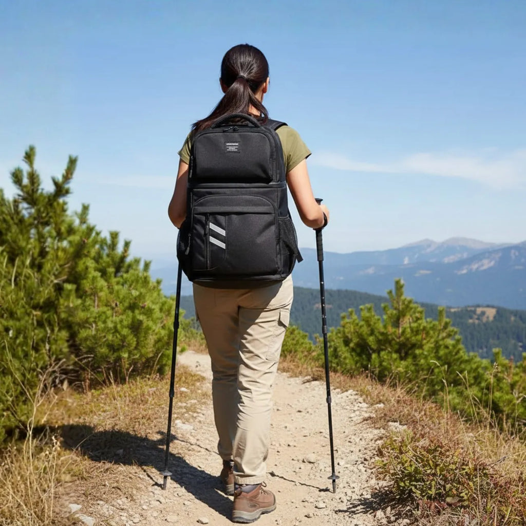 Conçu comme un sac à dos ergonomique avec bretelles réglables et poignée rembourrée, il se porte facilement sur le dos pour garder les mains libres lors de la randonnée, des trajets ou des voyages.