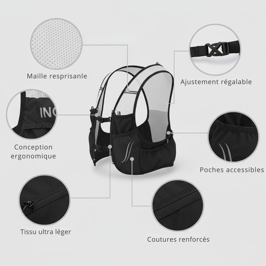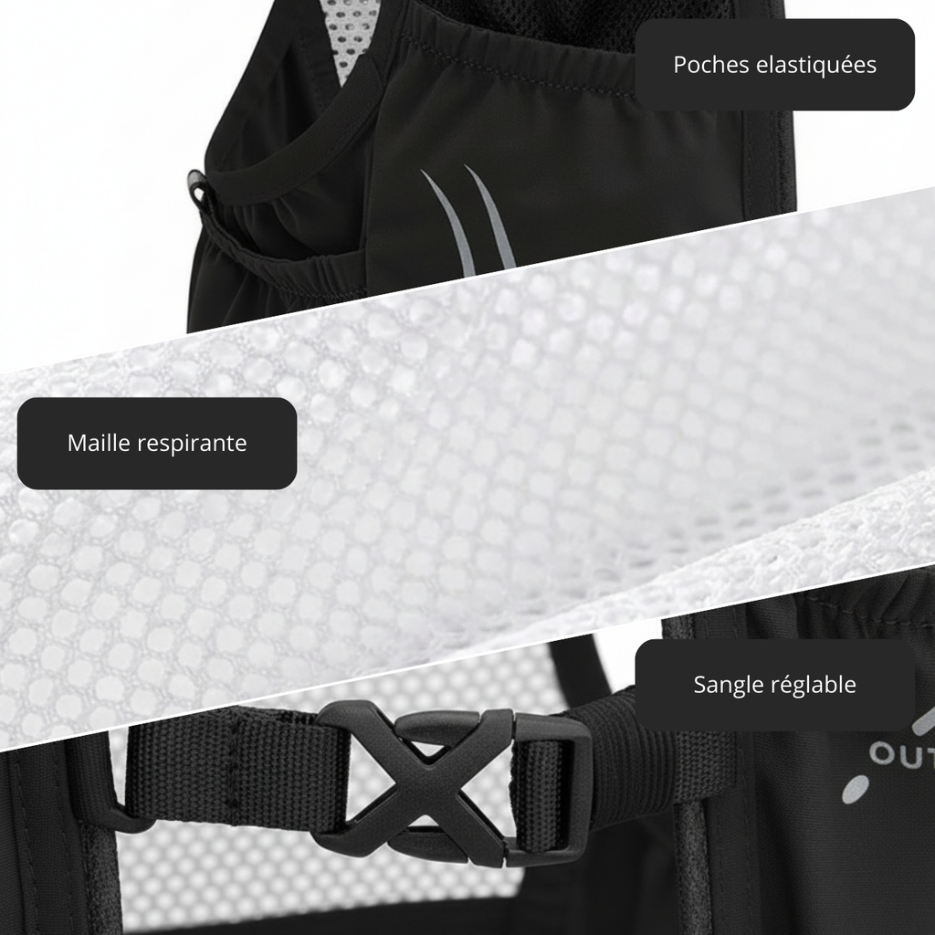Conçu pour épouser le haut du corps et limiter les mouvements. Parfait pour trail, running et sorties outdoor.