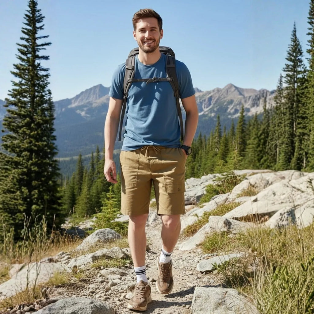 La coupe courte et la taille élastique assurent une mobilité fluide, idéale pour marcher, grimper ou bouger sans contrainte.