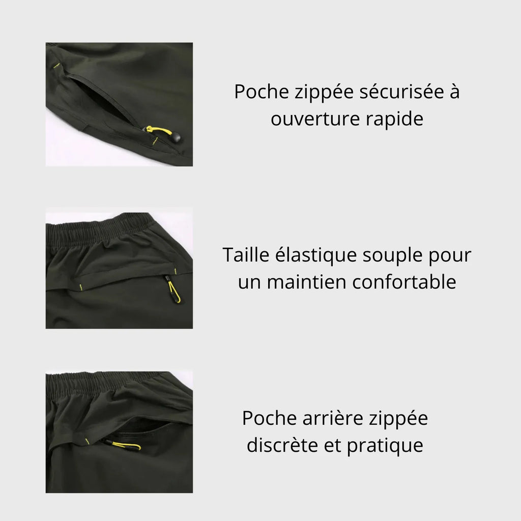 3 poches zippées sécurisent vos essentiels, parfait pour le sport, la marche ou les voyages actifs.