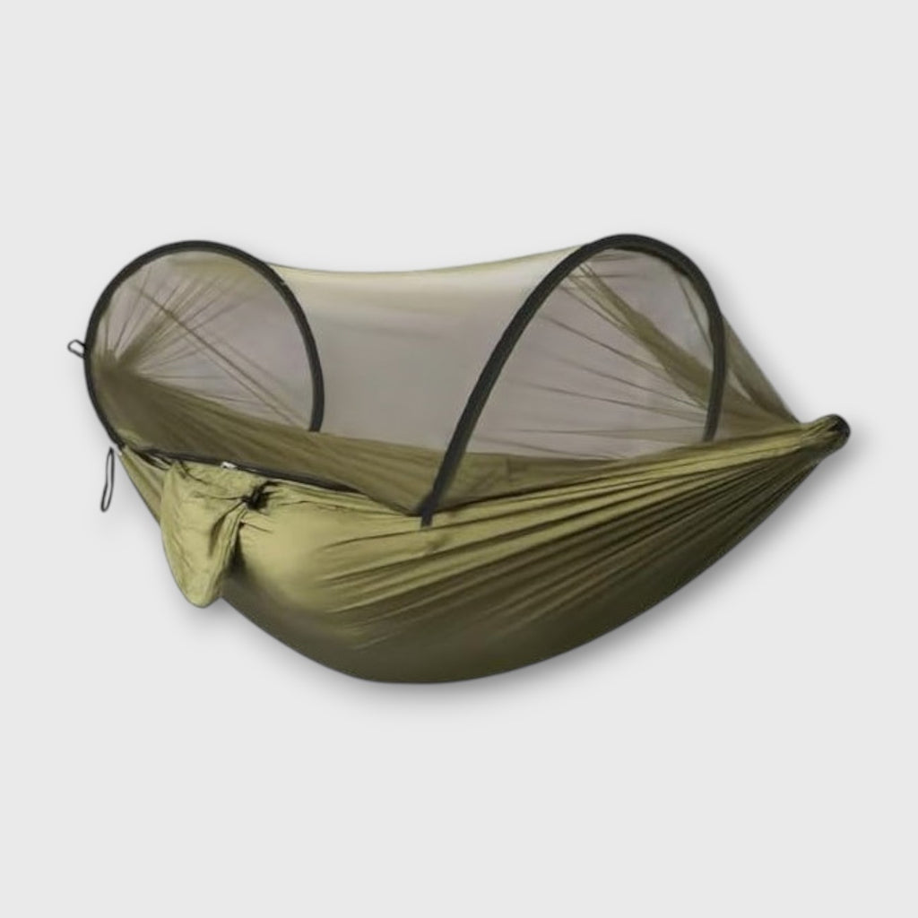Grâce aux sangles haute résistance et à la moustiquaire auto-déployante, vous installez votre espace de repos en quelques secondes.
